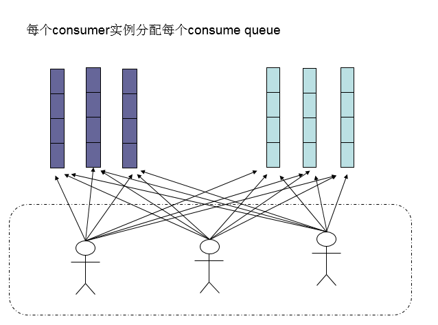 在实现上,其中一个不同就是在consumer分配queue的时候,所有consumer都分到所有的queue。