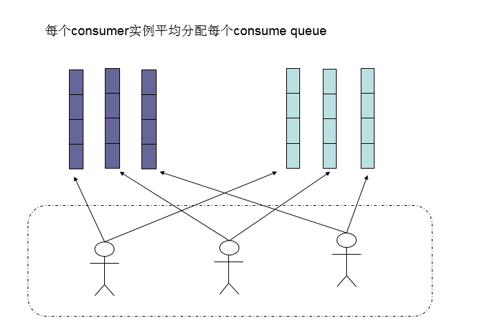 还有另外一种平均的算法是AllocateMessageQueueAveragelyByCircle,也是平均分摊每一条queue,只是以环状轮流分queue的形式,如下图: