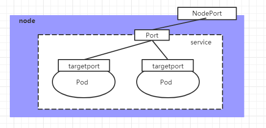 - NodePort:将Service通过指定的Node上的端口暴露给外部,通过此方法,就可以在集群外部访问服务