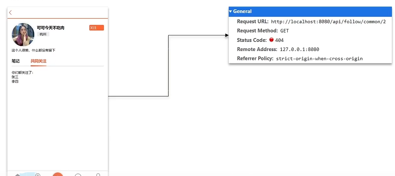 想要去看共同关注的好友,需要首先进入到这个页面,这个页面会发起两个请求