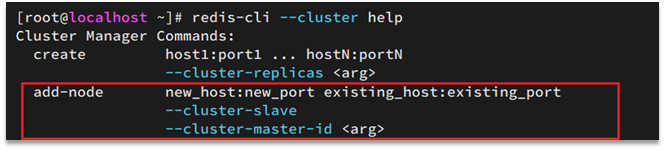 redis-cli --cluster提供了很多操作集群的命令,可以通过下面方式查看: