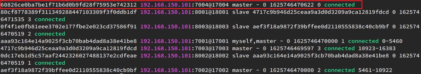 redis-cli --cluster add-node 192.168.150.101:7004 192.168.150.101:7001